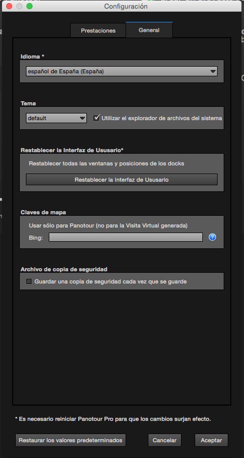 ¿como has abierto el proyecto, desde Panotour o desde el archivo que guarda?