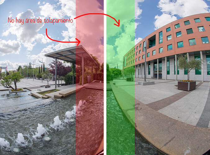 Entonces antes lograste pegarla, porque PTGui o cualquier otro programa necesita de un área de solapamiento mayor para entender los puntos de control.