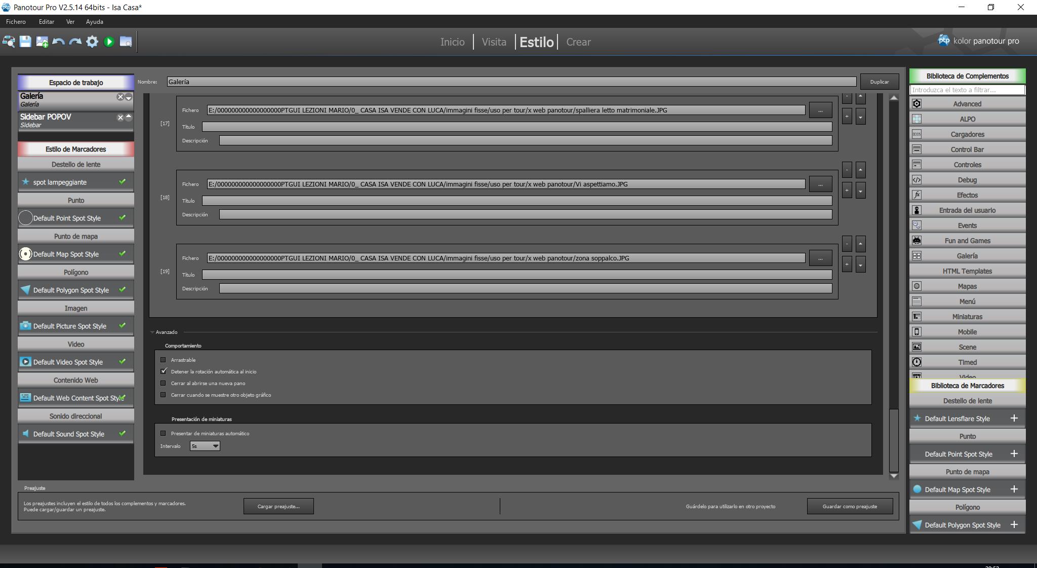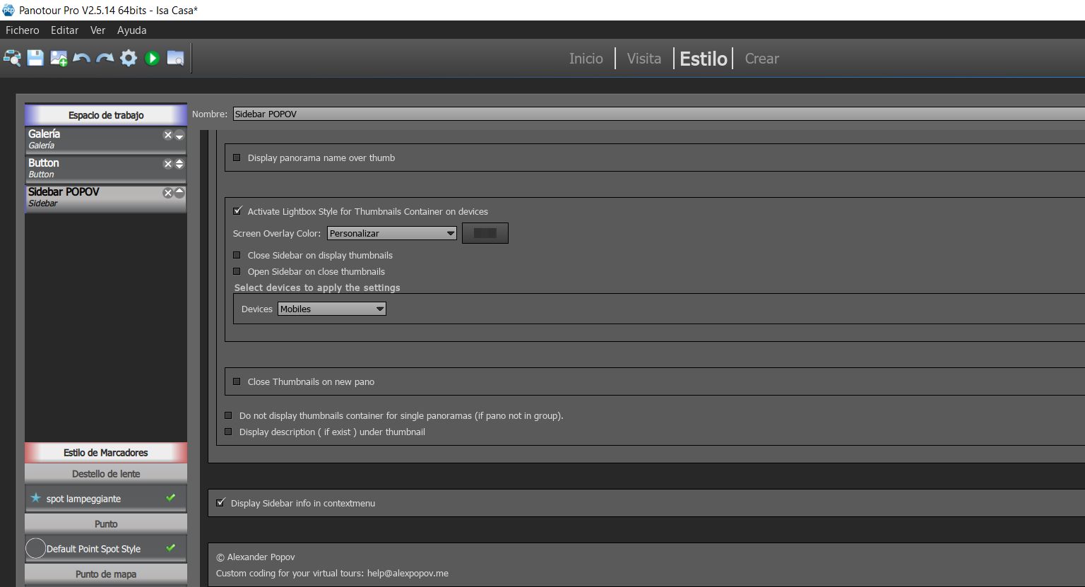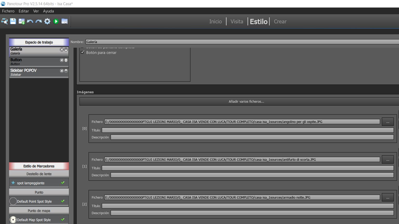 Hola Pili, todos mis problemas llegaban de mi plantilla ( sin " generated by Panotour)!