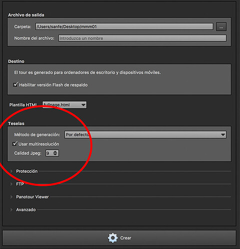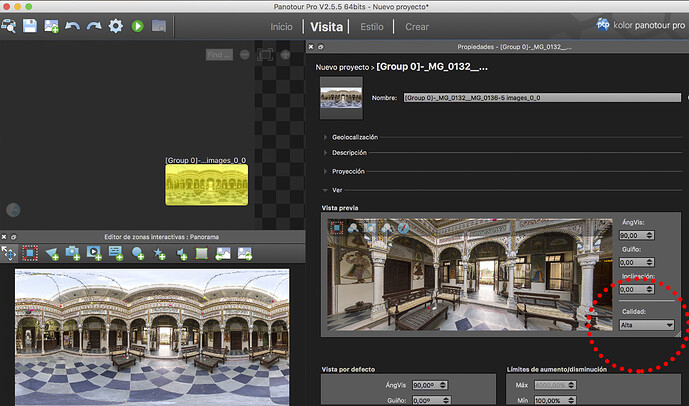 Cuando trabajas en Panotour, evidentemente la previa no estas viendo en alta calidad, para no ralentizar el proceso. Sin embargo, puedes generar previsualizaciones en alta calidad, pulsando donde te indico en la imagen: