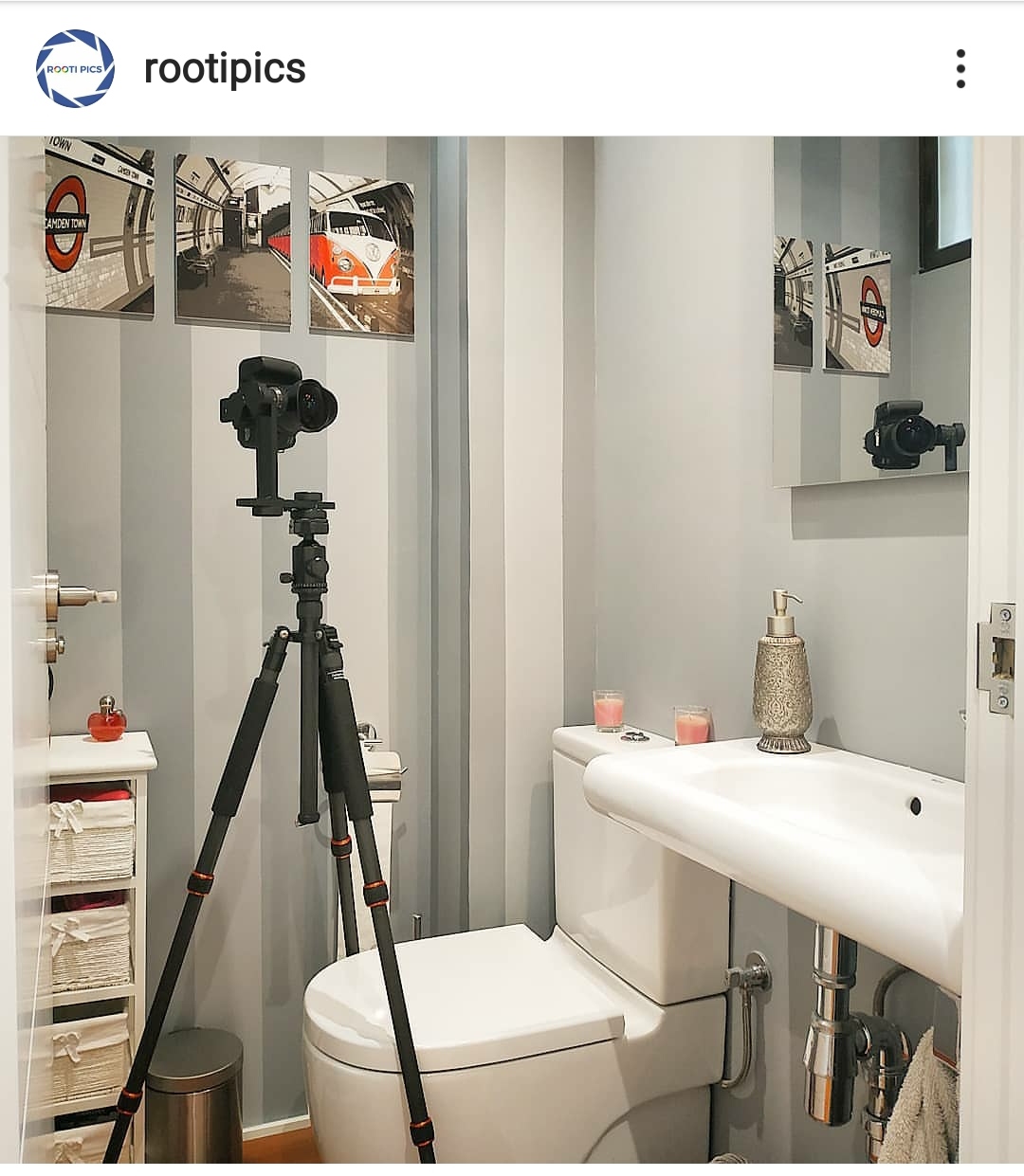 De hecho, en las distancias cortas es donde realmente se pone a prueba la técnica. Mira esta foto de un cuarto de baño muy pequeño y las dificultades que te puedes encontrar